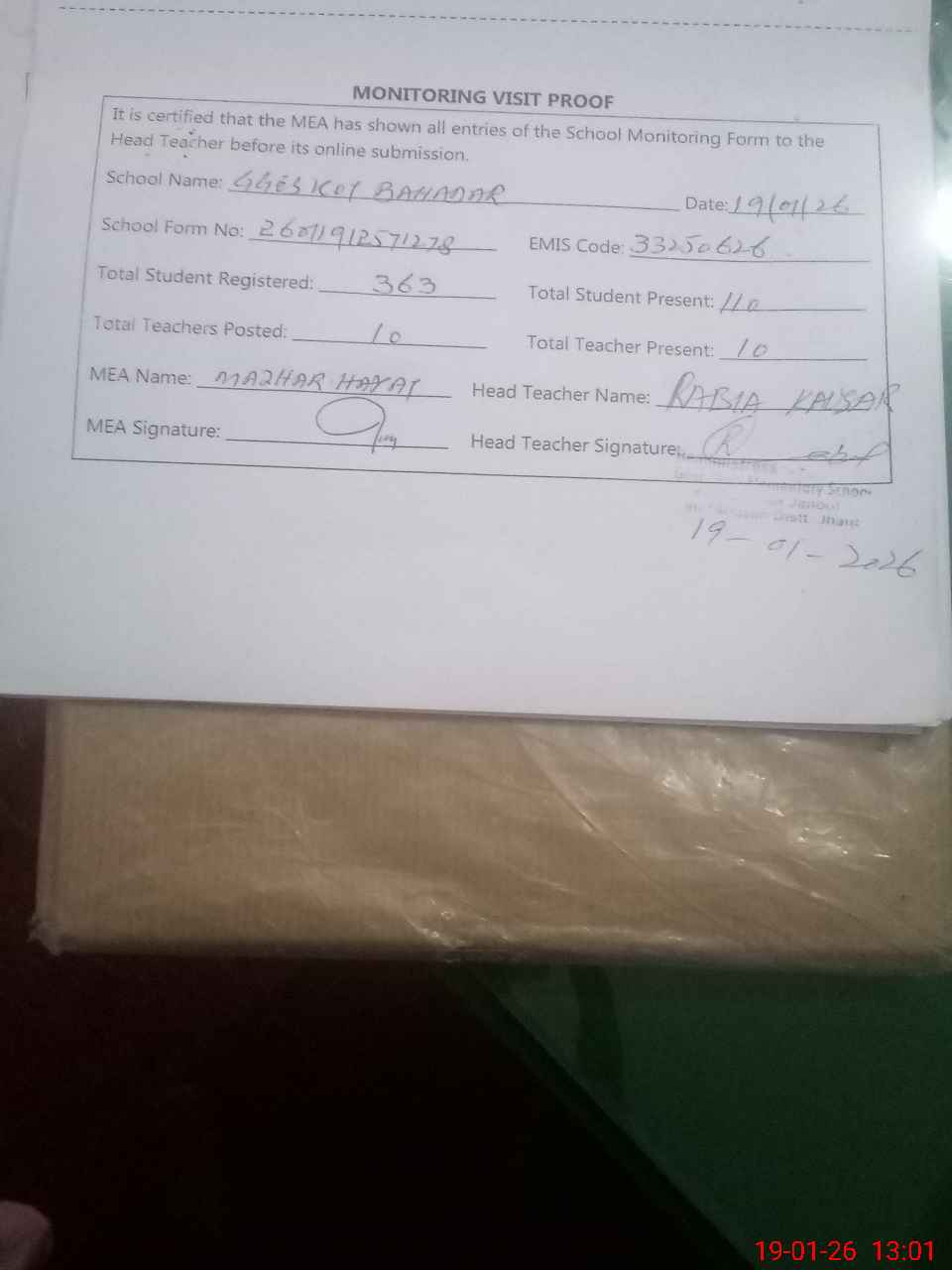 | EMIS Code: 33250626 | Name of School: GGES KOT BAHADAR JANOOBI | |||