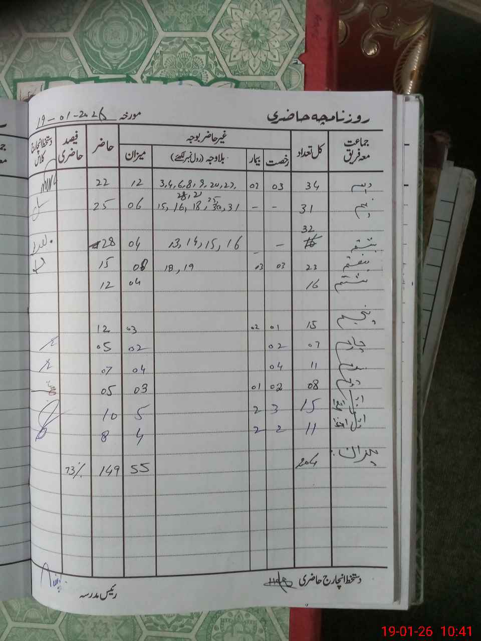 | CNIC | Full Name | Designation | R/C | Absence during last cal. month |