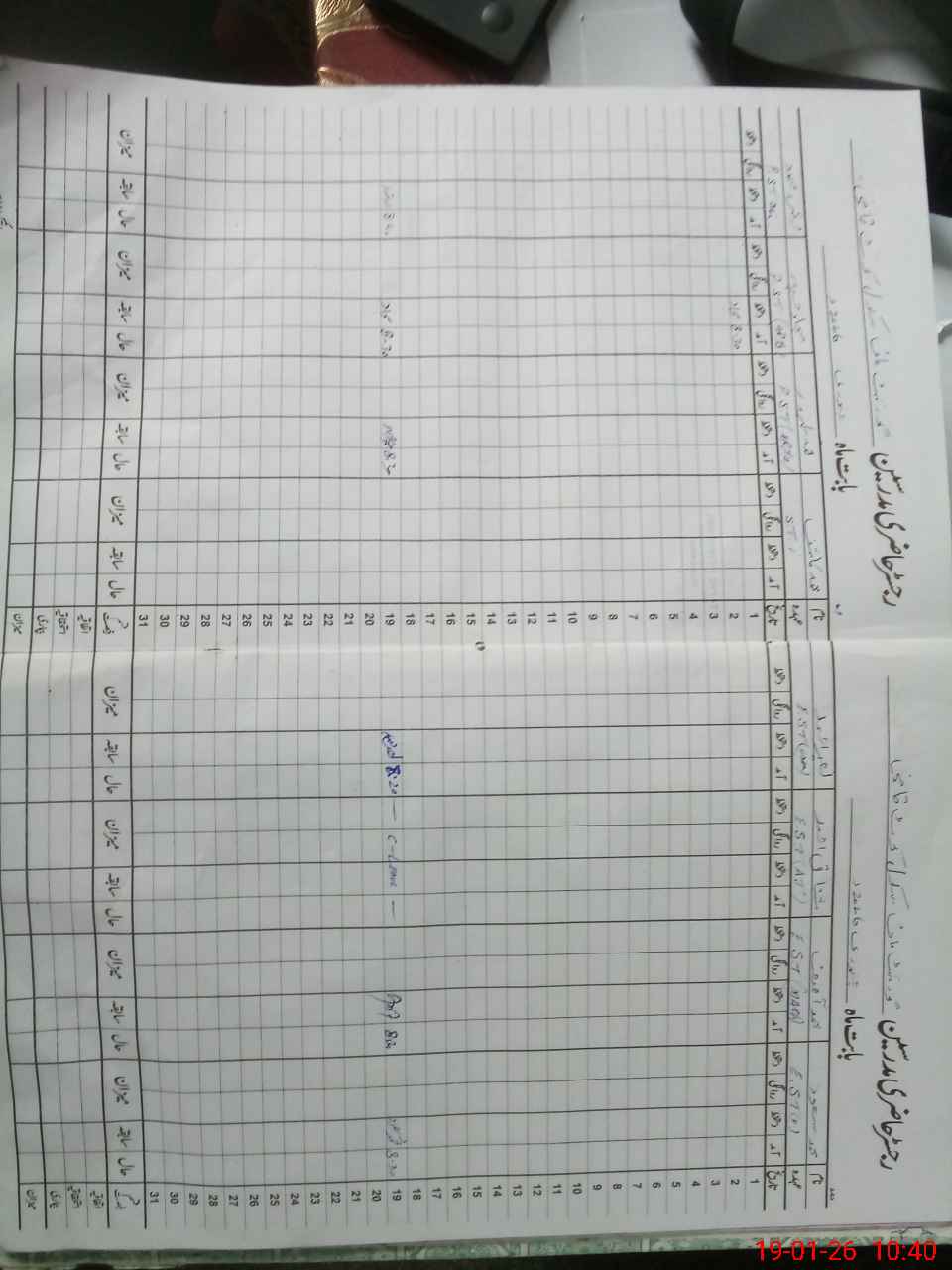 | CNIC | Full Name | Designation | R/C | Absence During Last Calender Month |