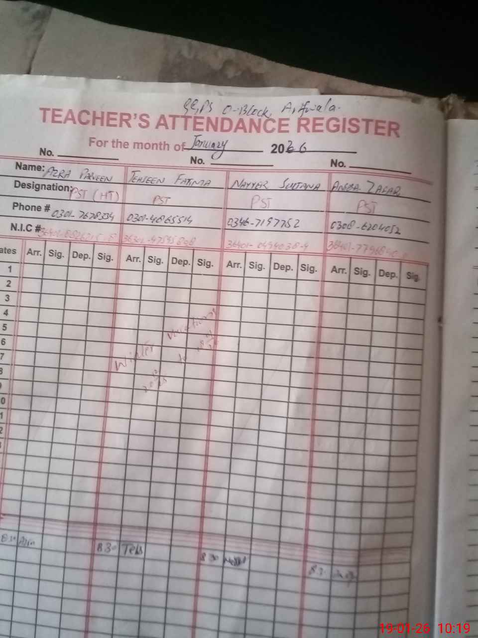 | Name: AZ**** PA**** Designation: (School Headmaster's/Headmistress's) PST Phone/Cell Number: 03**** |