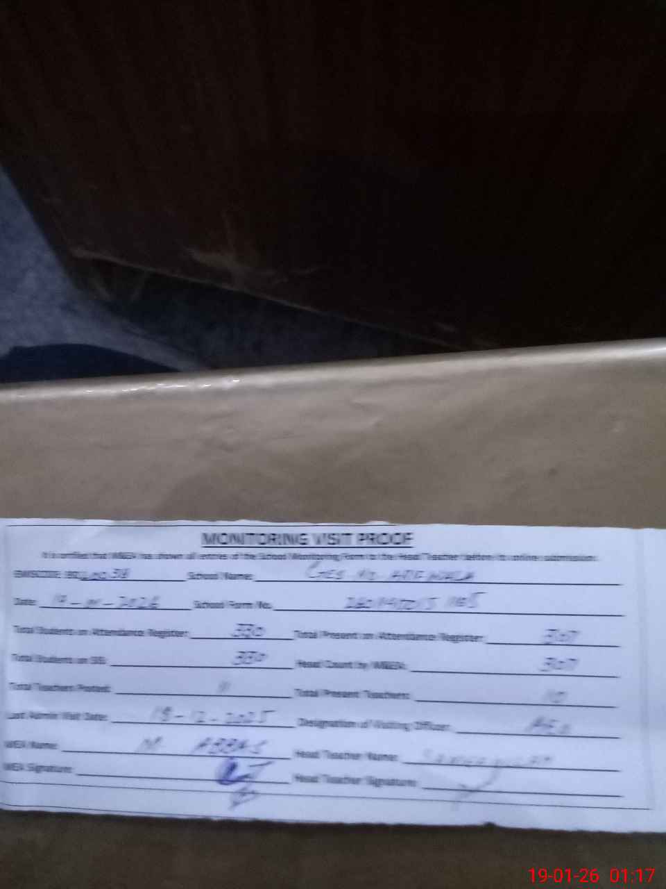 | Certified that this School was Inspected by the Undersigned MEA/DMO Today and the Information Stated Above is as Per Record. | |||||