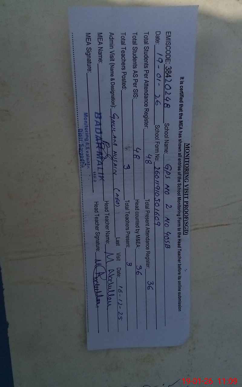 | EMIS Code: 38420248 | Name of School: GPS NO.2 CHAK NO.40 SB | |||