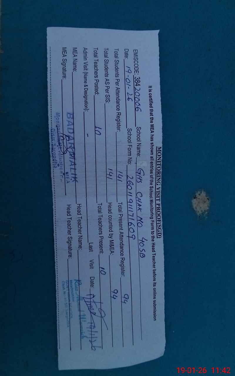 | EMIS Code: 38420006 | Name of School: GHS CHAK NO. 40 SB | |||
