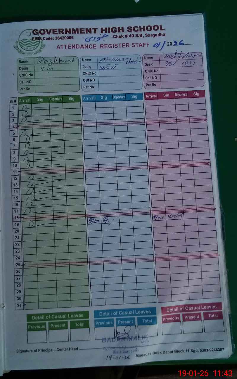 | Name: Ri**** Ah**** Designation: (School Headmaster's/Headmistress's) SST G Phone/Cell Number: 03**** |