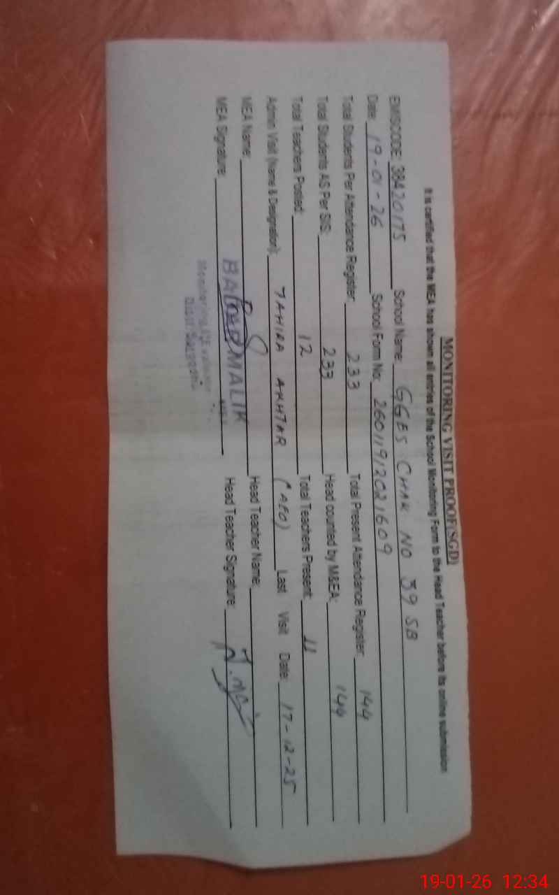 | EMIS Code: 38420175 | Name of School: GGES CHAK NO.39 SB SGD | |||