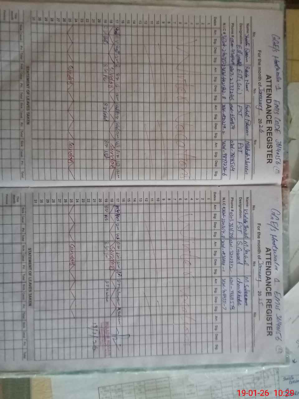 | CNIC | Full Name | Designation | R/C | Absence during last cal. month |