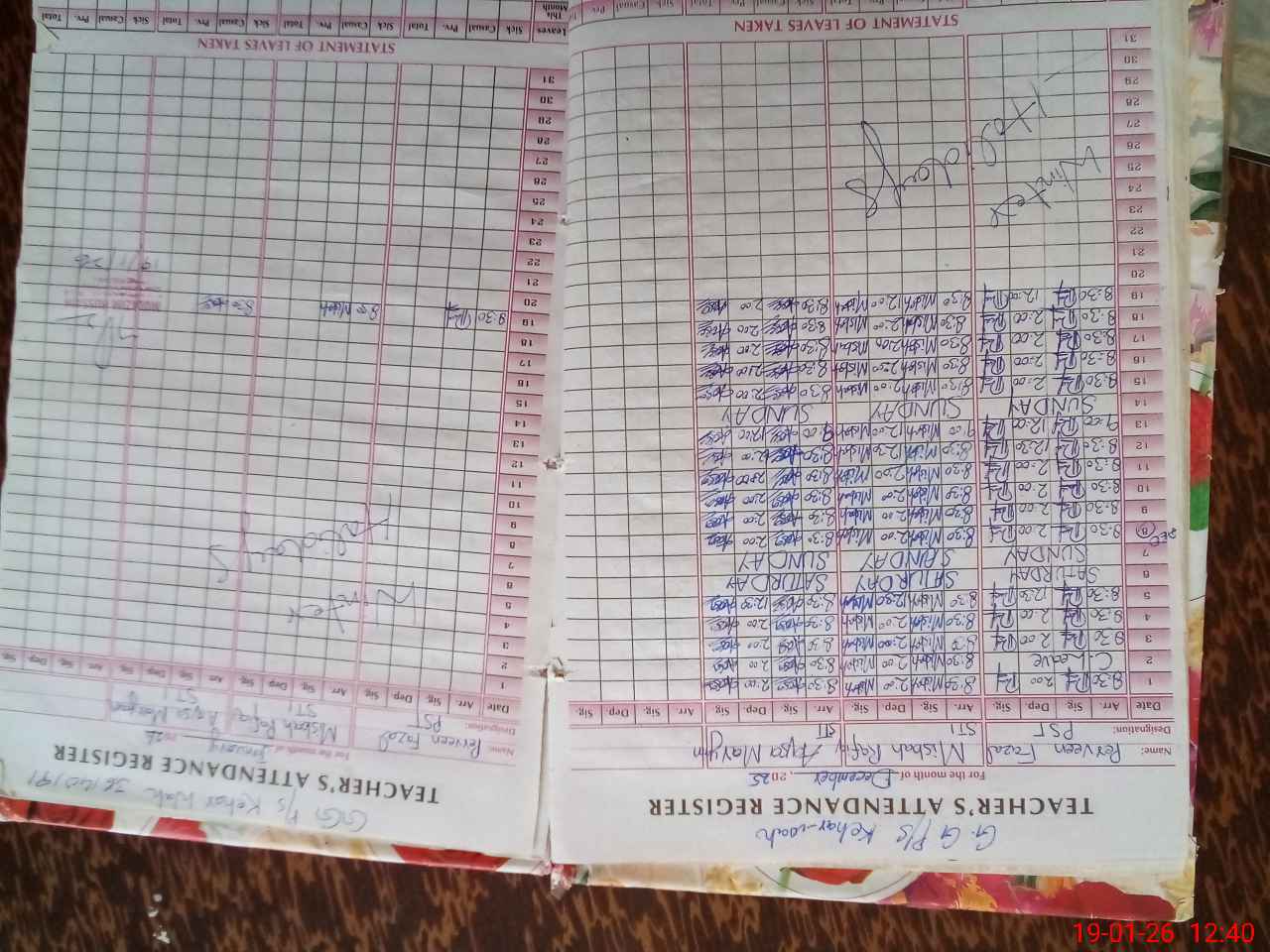 | CNIC | Full Name | Designation | R/C | Absence During Last Calender Month |