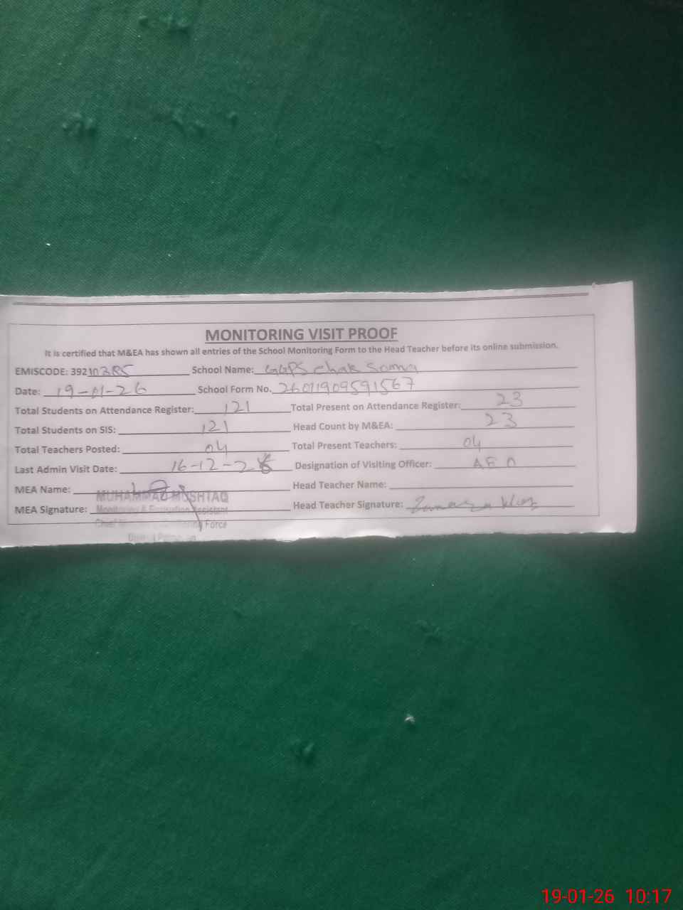 | EMIS Code: 39210385 | Name of School: GGPS CHAK SOMA | |||