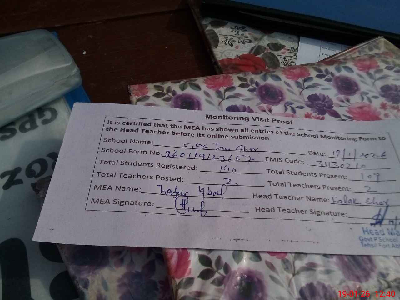 | EMIS Code: 31130210 | Name of School: GPS JAM GARH | |||