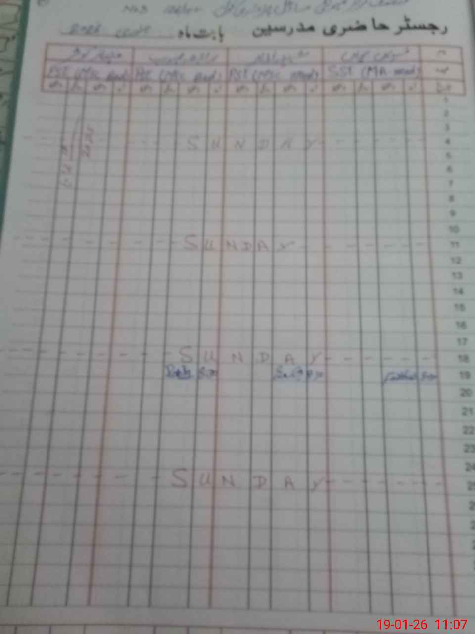 | CNIC | Full Name | Designation | R/C | Absence During Last Calender Month |