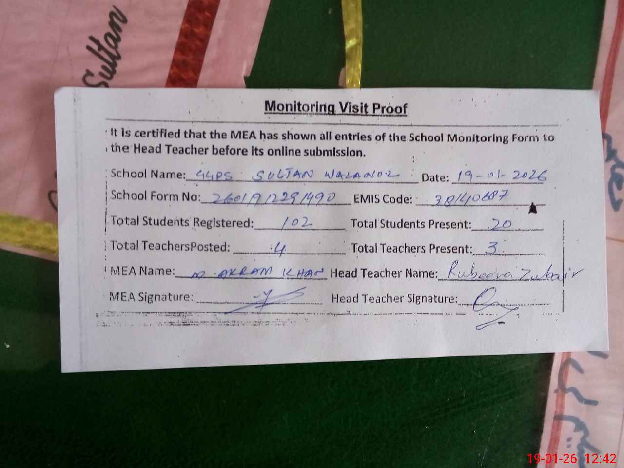 | EMIS Code: 38140687 | Name of School: GGPS SULTAN WALA NO. 2 | |||
