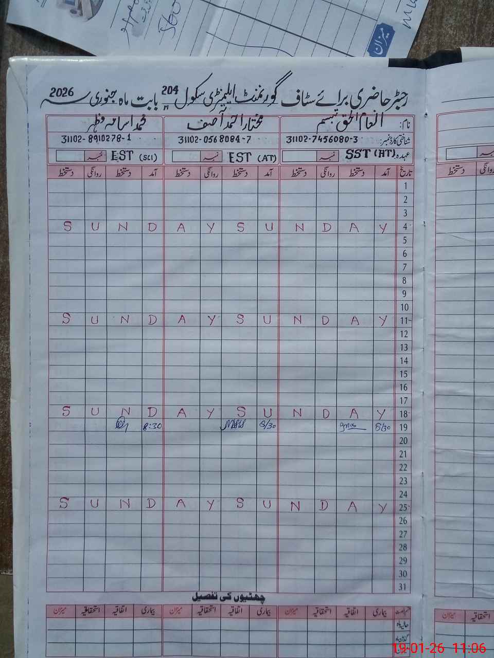 | Name: In**** ULHa**** Ta**** Designation: (School Headmaster's/Headmistress's) Sst Phone/Cell Number: 03**** |