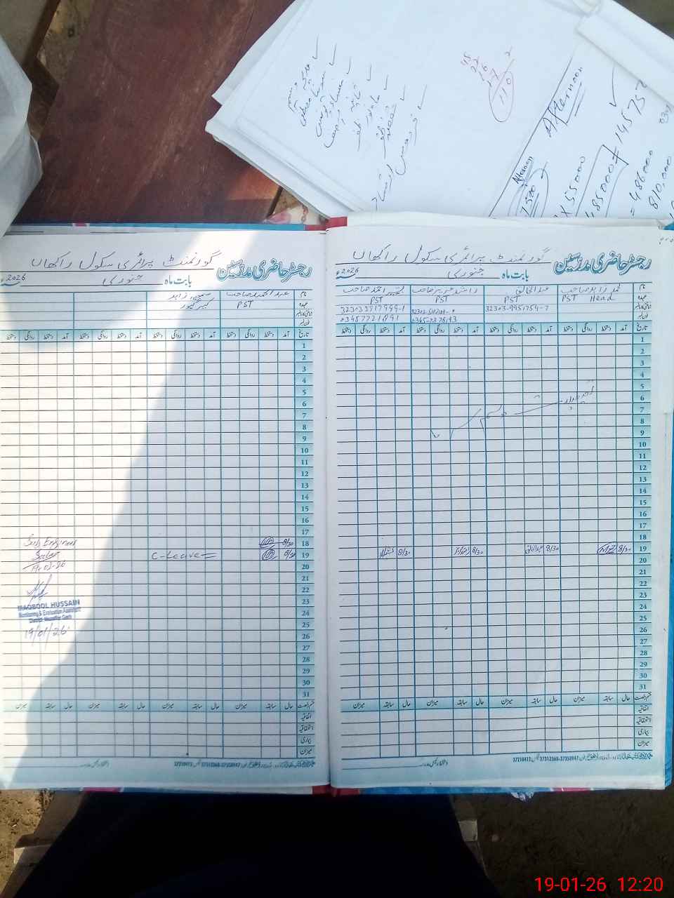 | Name: Ab**** Kh**** Designation: (School Headmaster's/Headmistress's) Pst Phone/Cell Number: 03**** |