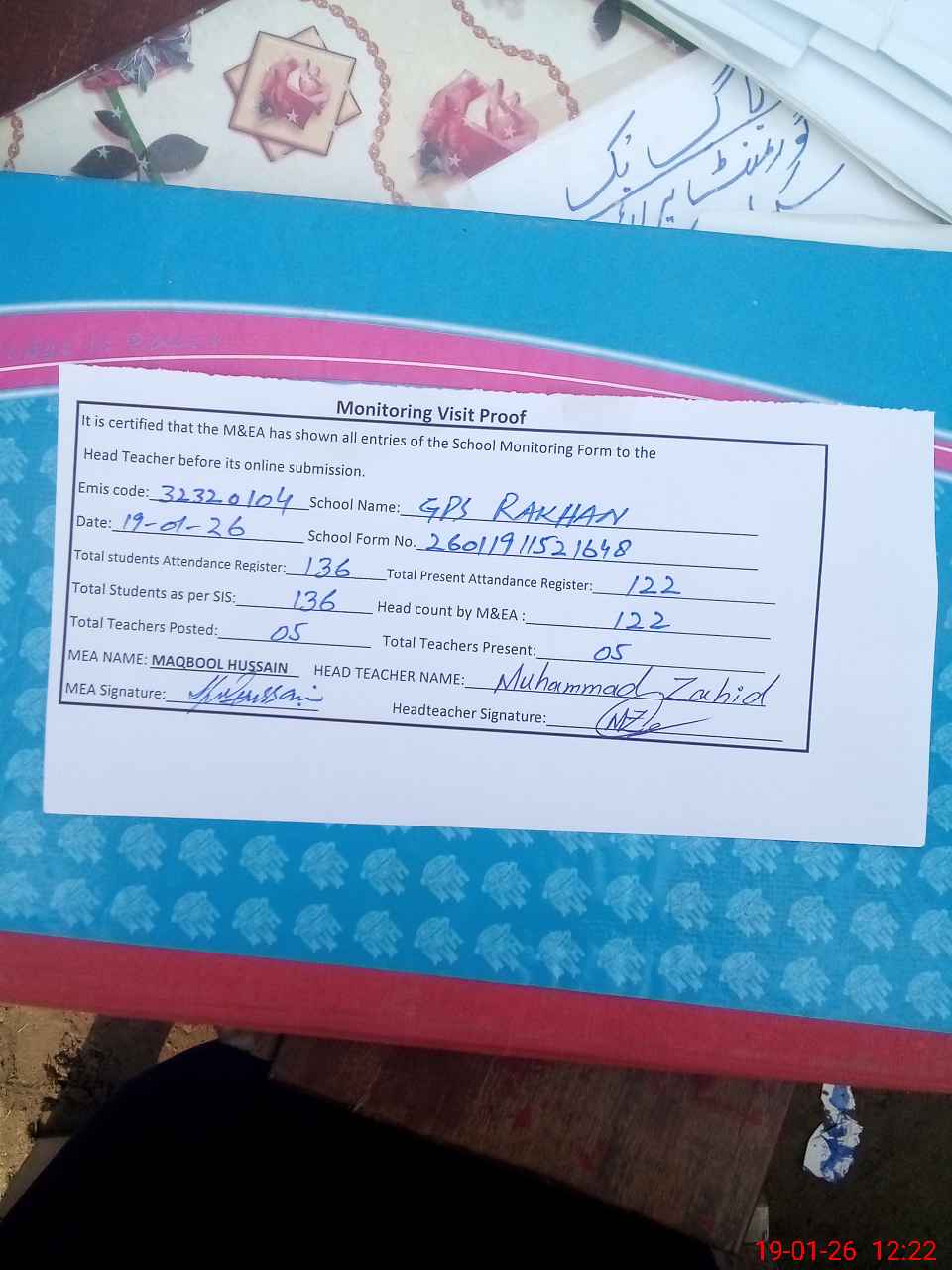 | Attendance Register | Head Teacher | MEA with School | Visit Proof |