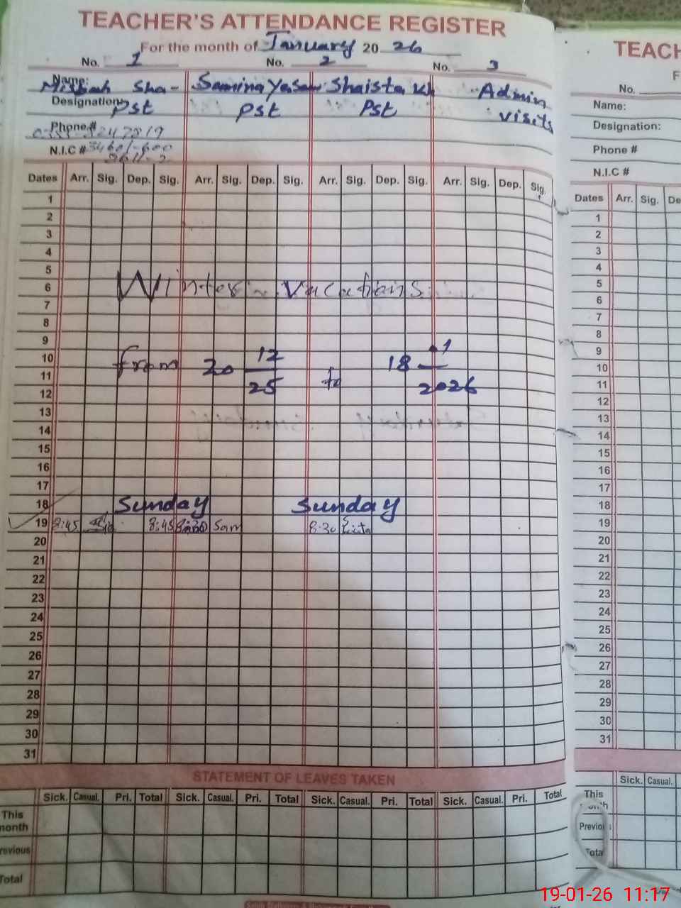 | Name: Mi**** Sh**** Designation: (School Headmaster's/Headmistress's) PST Phone/Cell Number: 03**** |