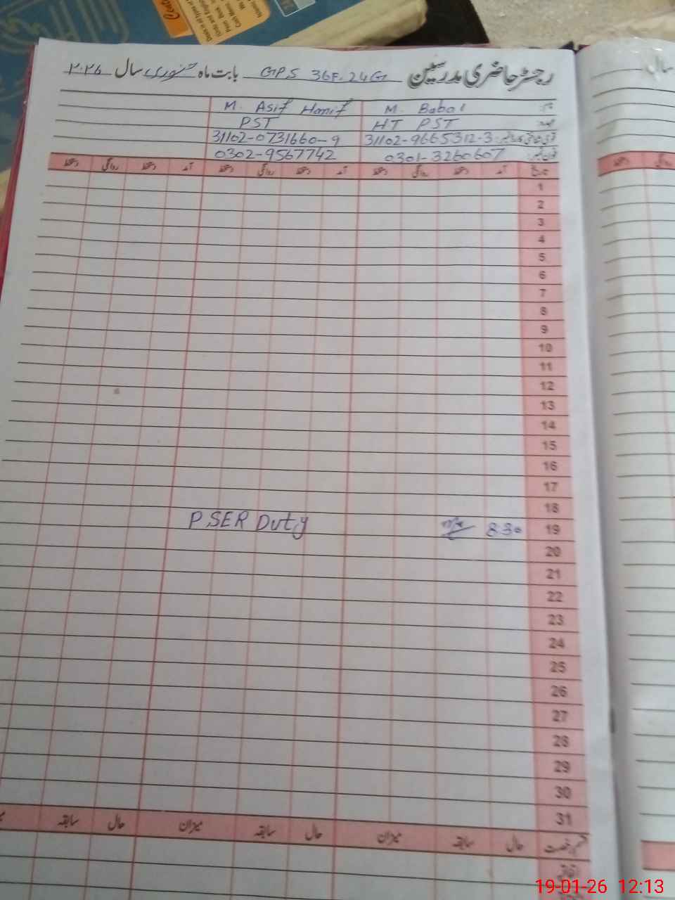 | Name: Mu**** Ba**** Designation: (School Headmaster's/Headmistress's) PST Phone/Cell Number: 03**** |