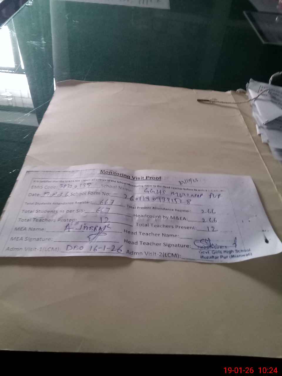 | EMIS Code: 38320139 | Name of School: GGHS MUZAFFAR PUR | |||