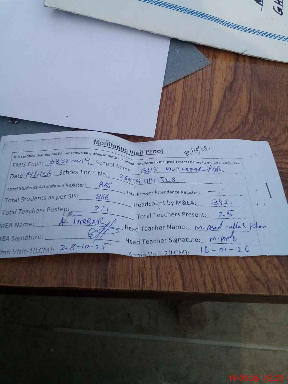| EMIS Code: 38320019 | Name of School: GHS MUZAFFAR PUR | |||