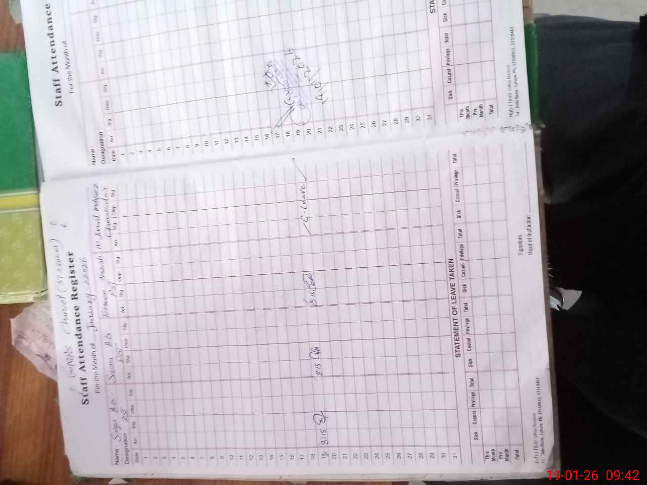 | CNIC | Full Name | Designation | R/C | Absence During Last Calender Month |