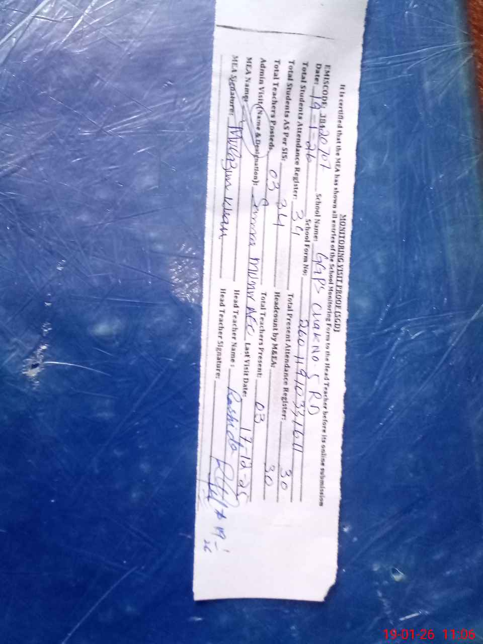 | EMIS Code: 38420707 | Name of School: GGPS CHAK NO.5 REMOUNT DEPOT | |||