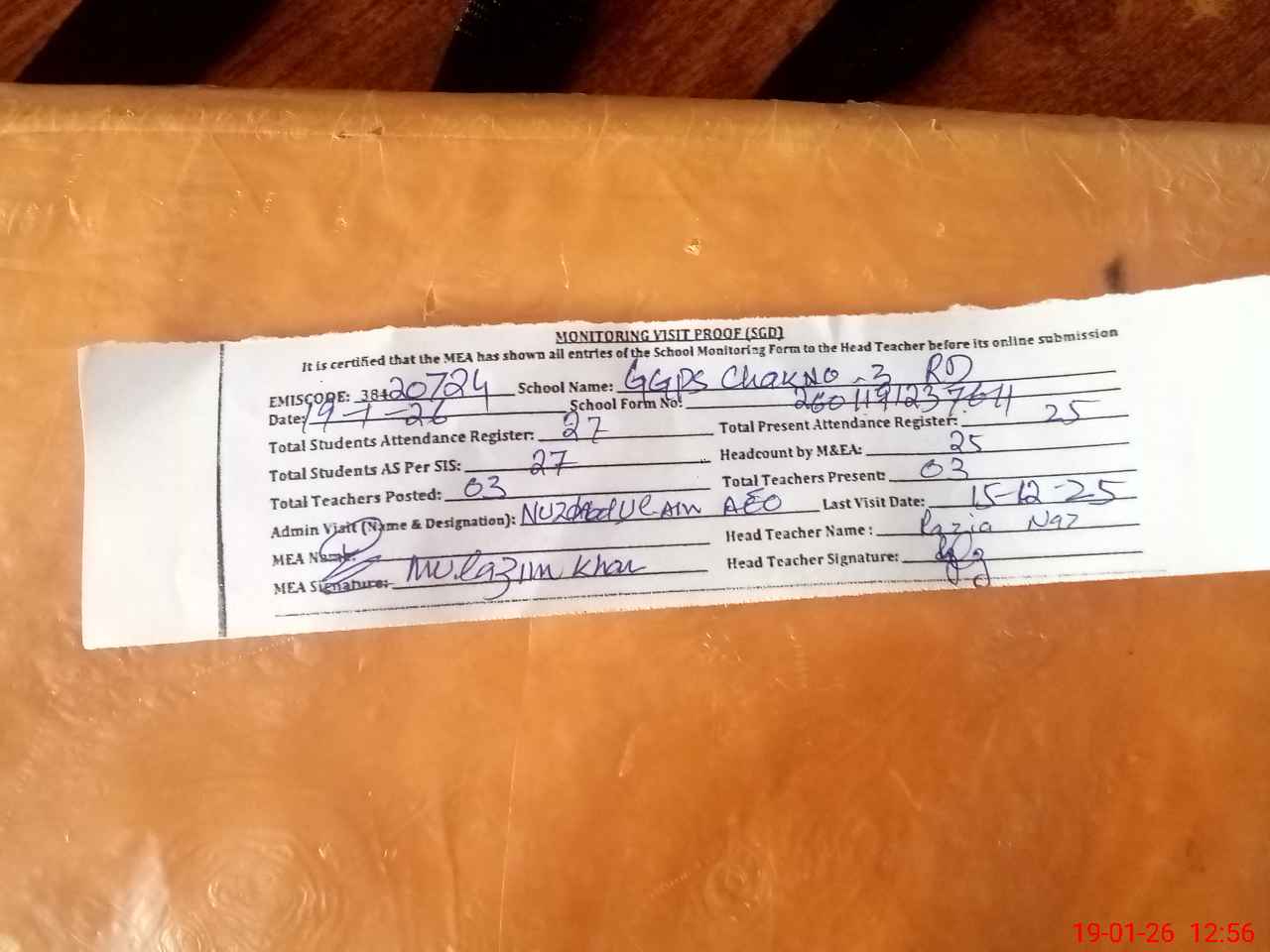 | EMIS Code: 38420724 | Name of School: GGPS CHAK NO.3 REMOUNT DEPOT | |||