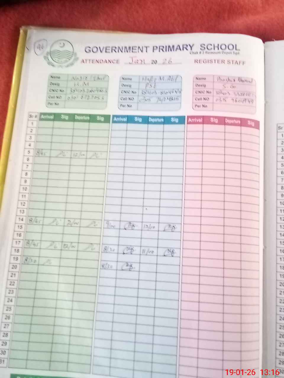 | Name: NA**** IQ**** AH**** Designation: (School Headmaster's/Headmistress's) PST Phone/Cell Number: 03**** |