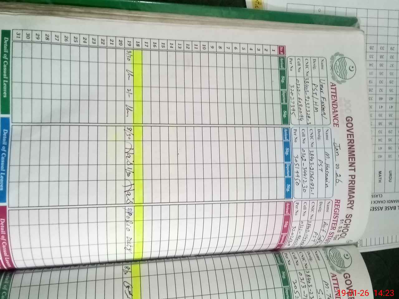 | CNIC | Full Name | Designation | R/C | Absence During Last Calender Month |