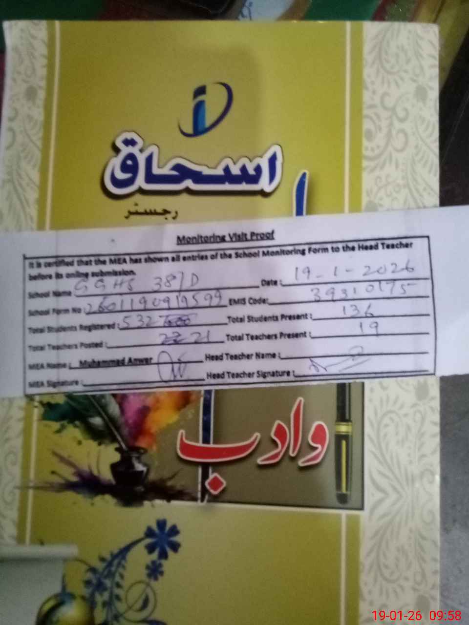 | EMIS Code: 39310175 | Name of School: GGHS 38 D KALAN | |||