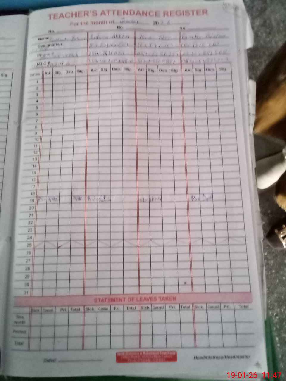 | Name: NU**** FA**** Designation: (School Headmaster's/Headmistress's) S.S.T.(Arts) Phone/Cell Number: 03**** |