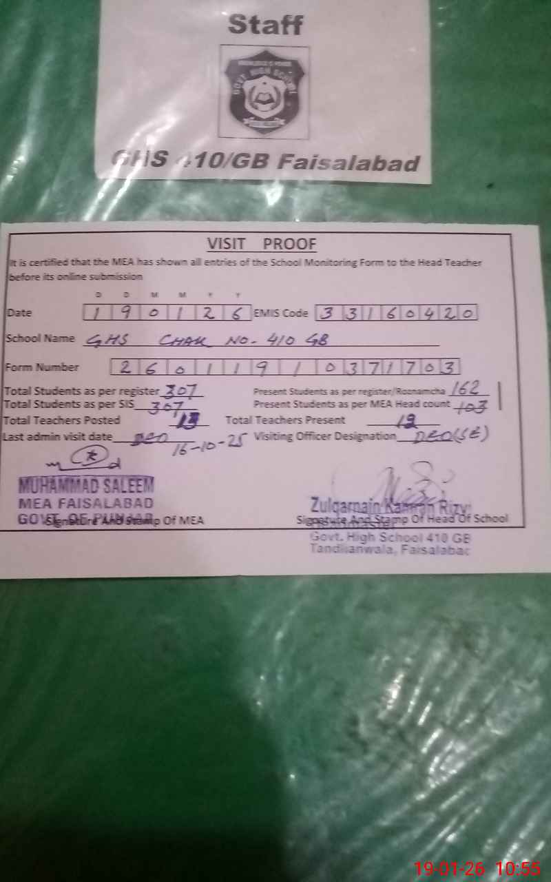 | EMIS Code: 33160420 | Name of School: GHS 410/GB | |||