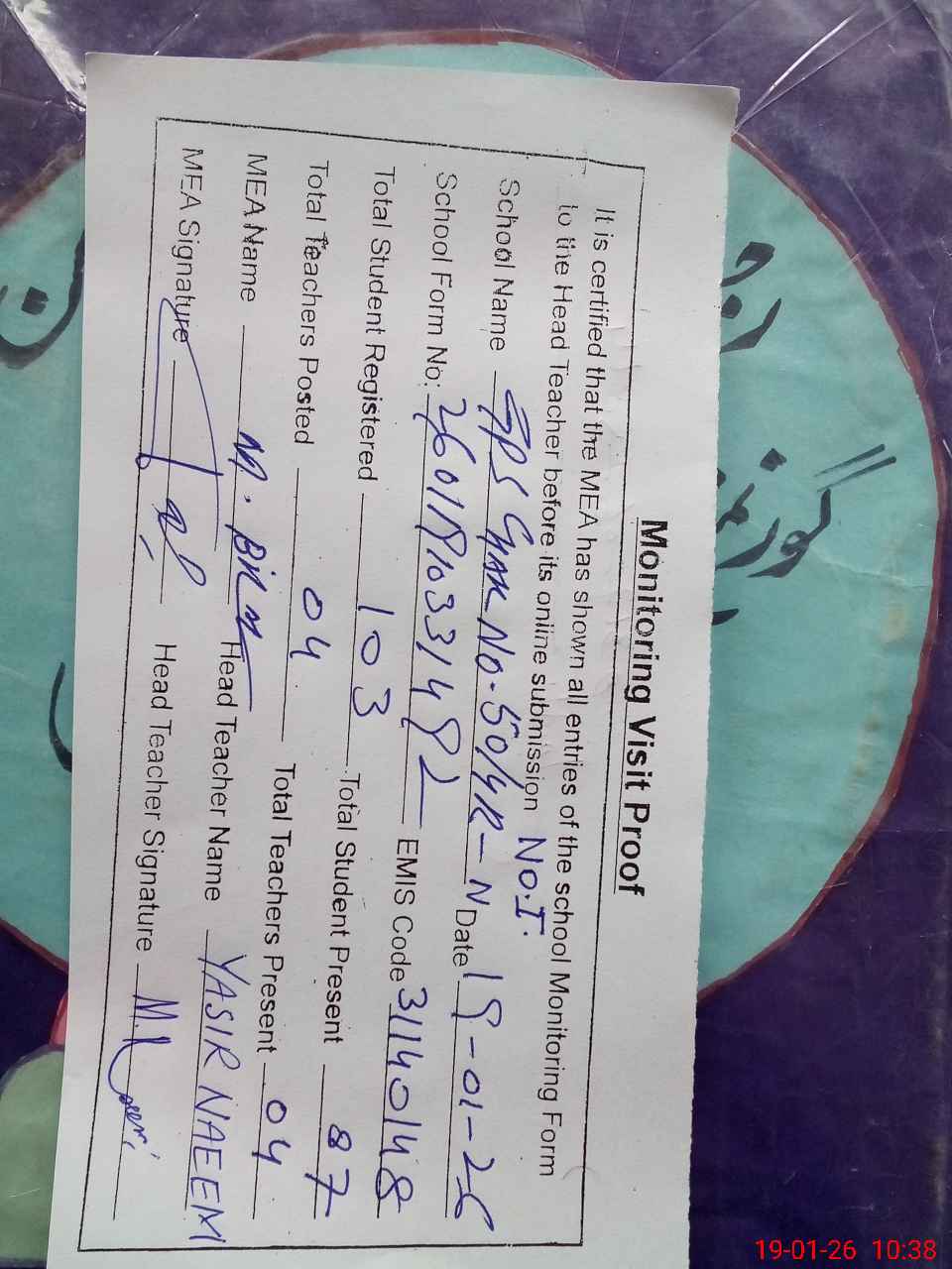 | EMIS Code: 31140148 | Name of School: GPS CHAK NO 50/4-R NO 1(N) | |||