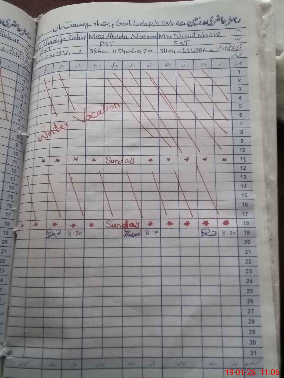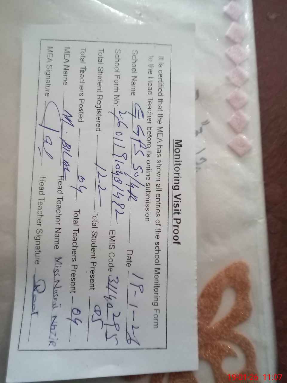 | Name: NU**** NA**** Designation: (School Headmaster's/Headmistress's) EST Phone/Cell Number: 03**** |