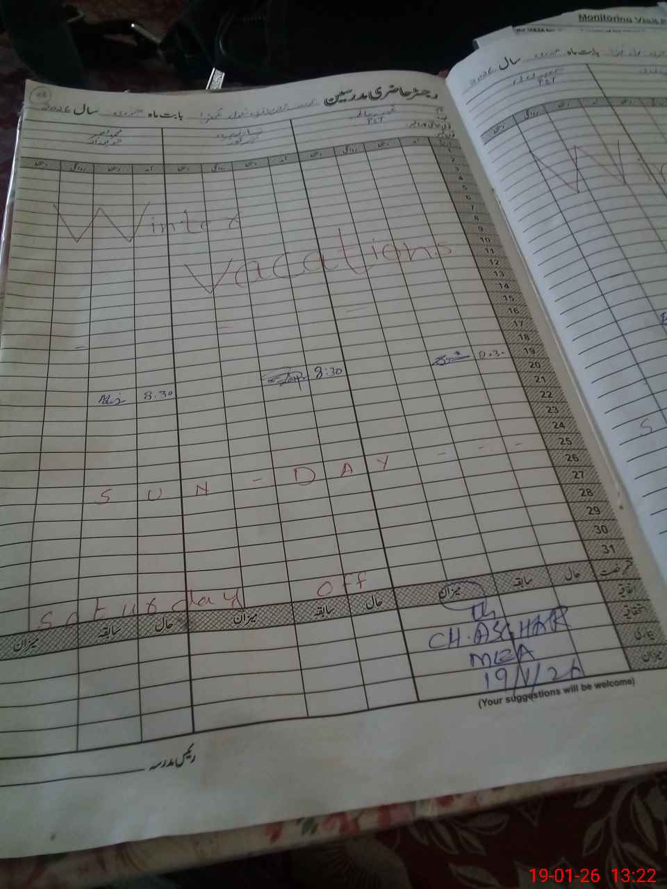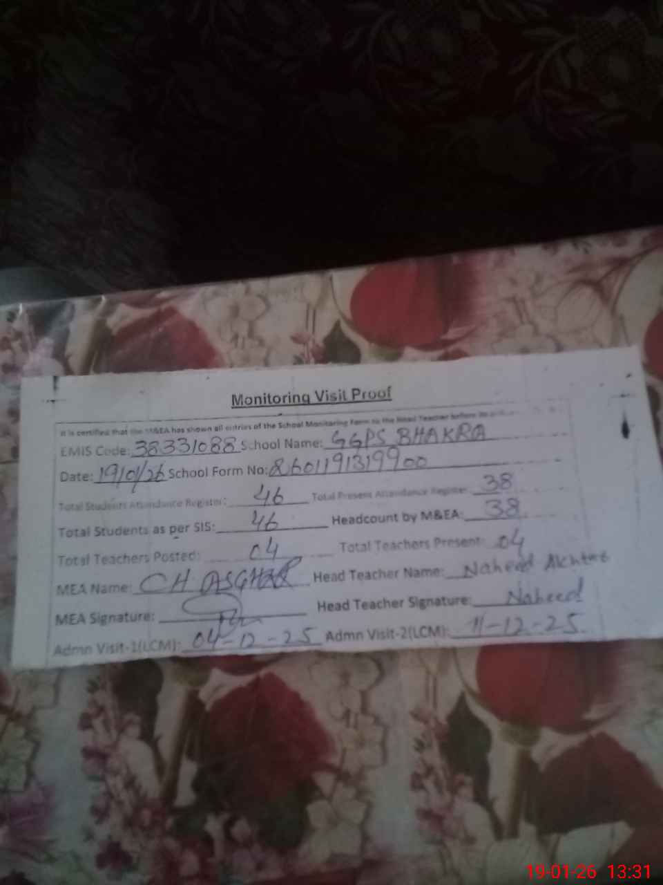 | Attendance Register | Head Teacher | MEA with School | Visit Proof |