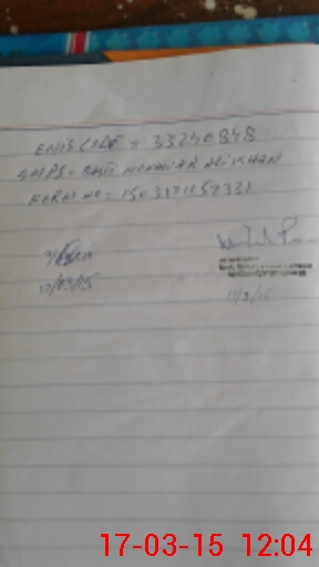 | Name: MU**** PE**** Designation: (School Headmaster's/Headmistress's) PST Phone/Cell Number: 03**** |