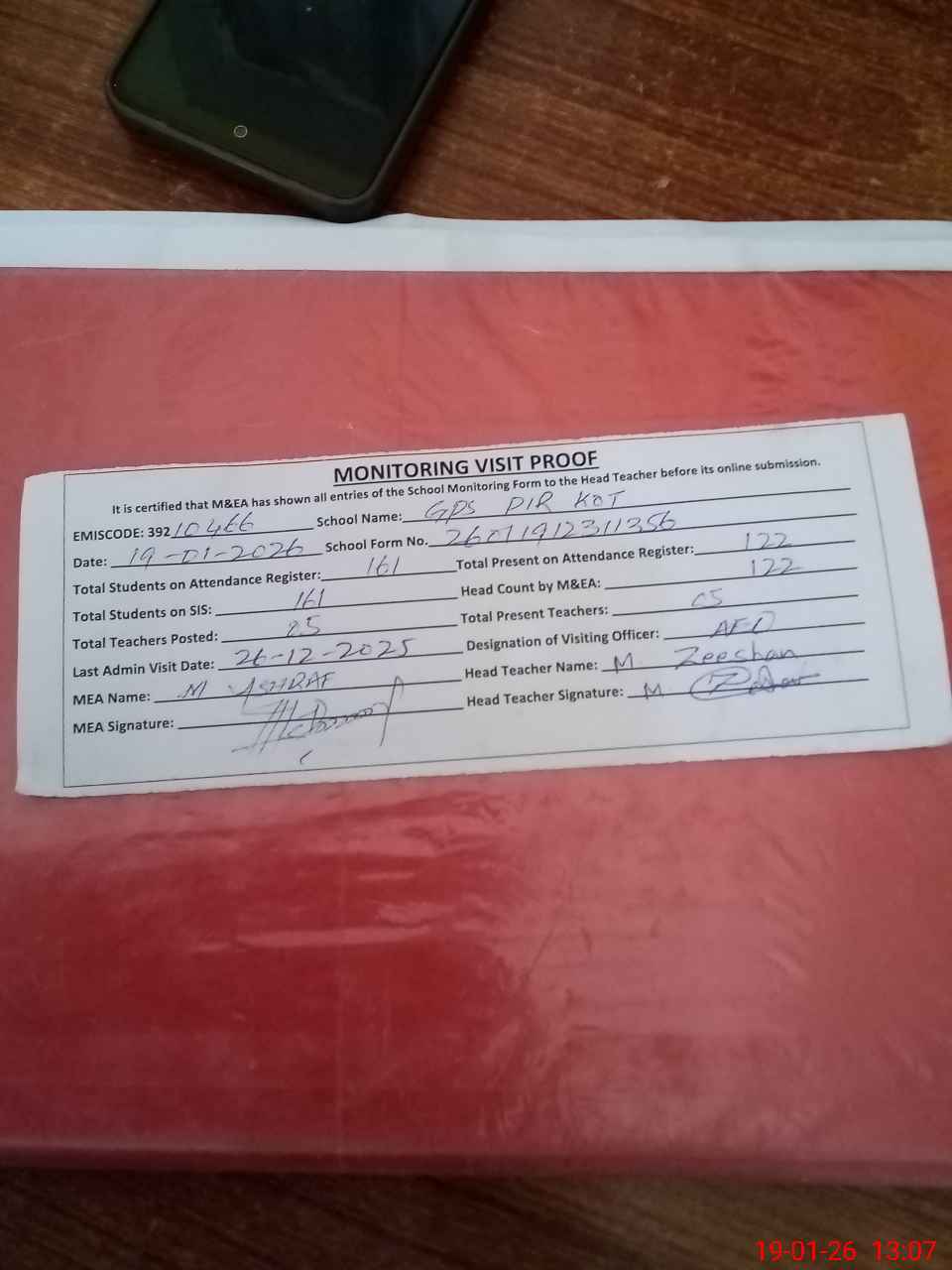 | EMIS Code: 39210466 | Name of School: GPS PIR KOT PAKPATTAN | |||
