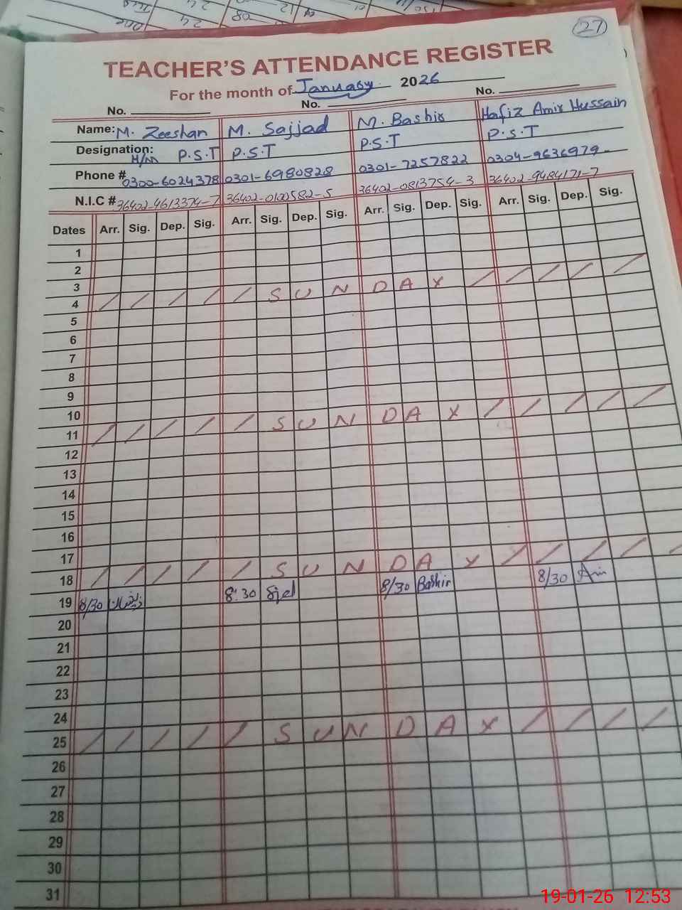 | Name: Mu**** Ze**** Designation: (School Headmaster's/Headmistress's) PST Phone/Cell Number: 03**** |
