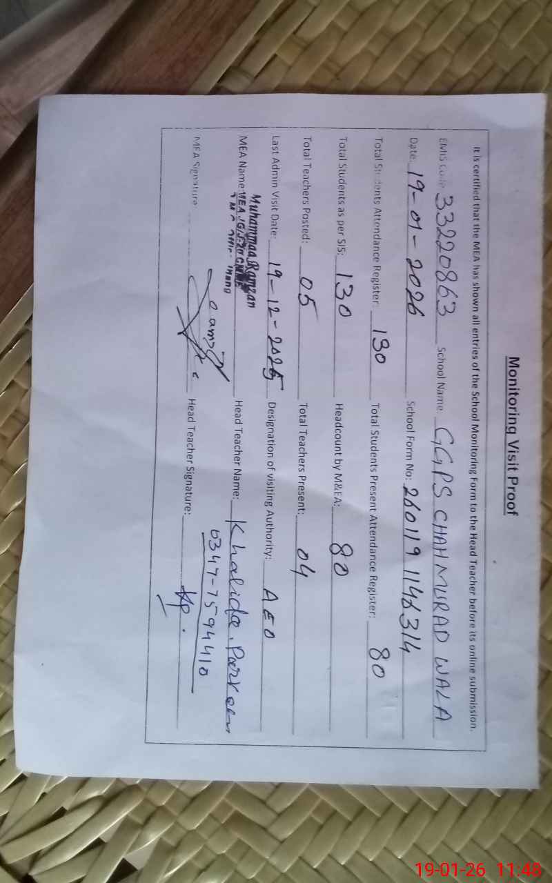 | EMIS Code: 33220863 | Name of School: GGPS CHAH MURAD WALA | |||