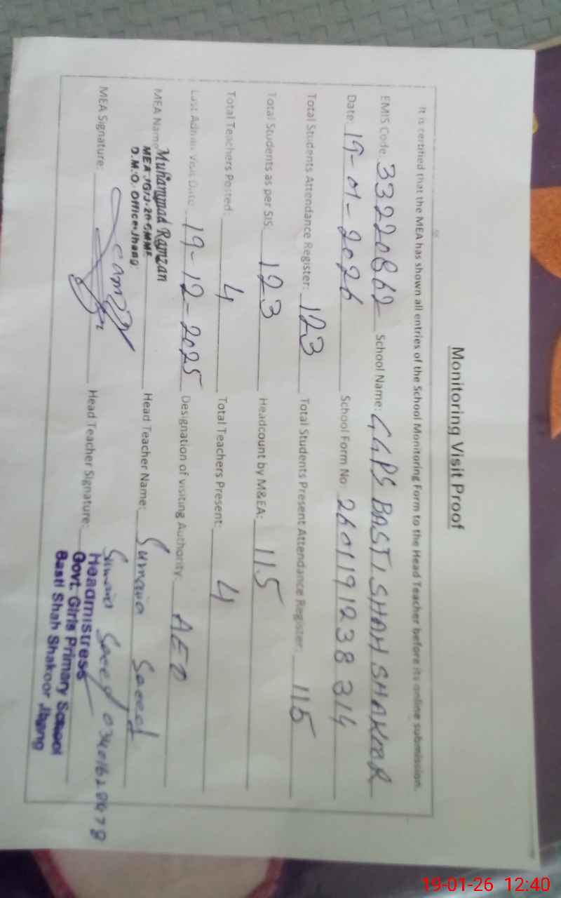 | EMIS Code: 33220862 | Name of School: GGPS BASTI SHAH SHAKOOR | |||