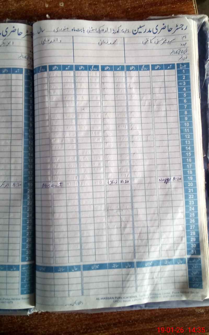 | 35**** | Wa**** Al**** | PST Arts | Regular | 0 | 0 | 16 | 0 | 0 | 0 | 0 | 0 | 0 | Absent (Un-Authorized) |
