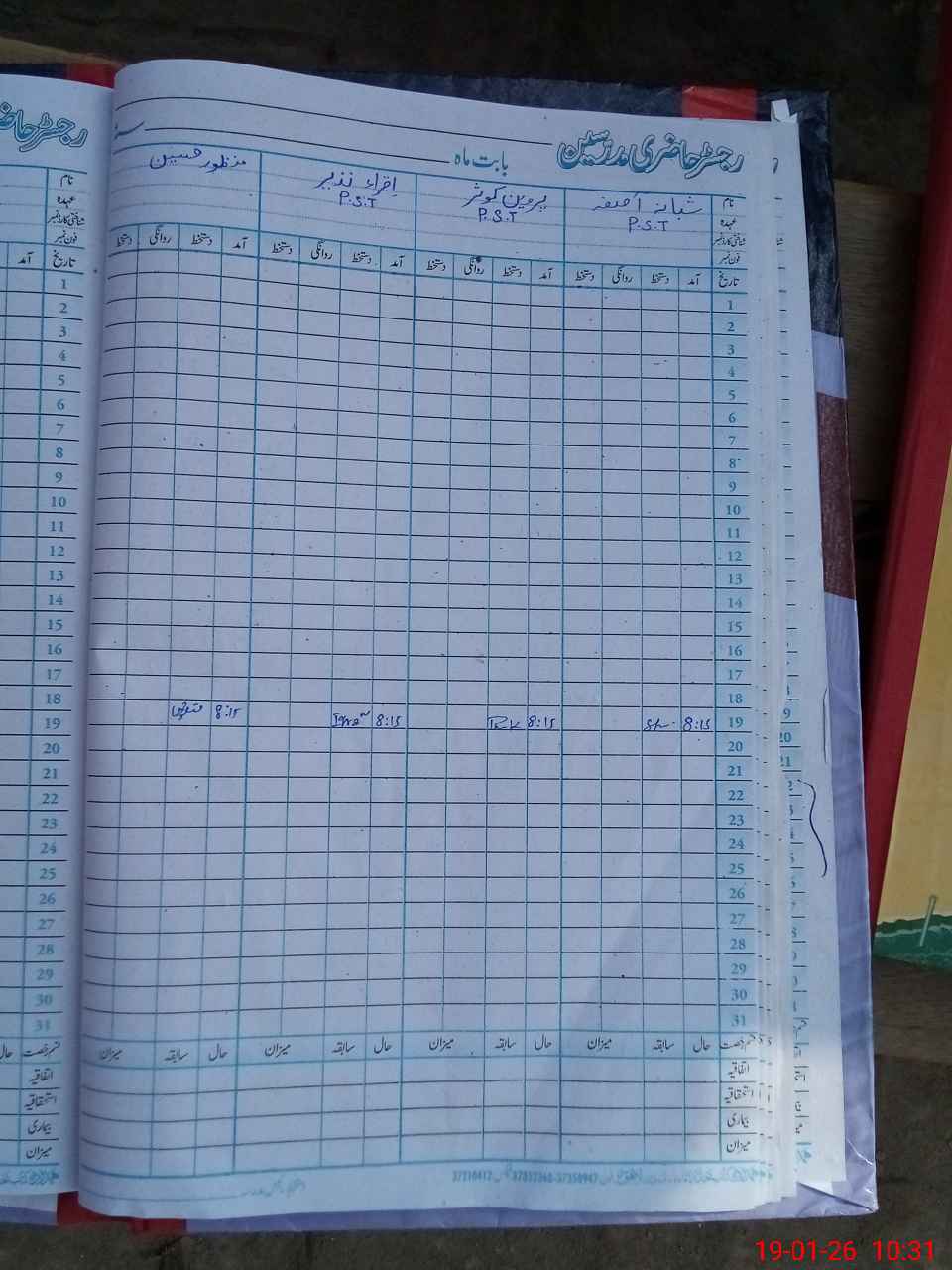 | CNIC | Full Name | Designation | R/C | Absence During Last Calender Month |