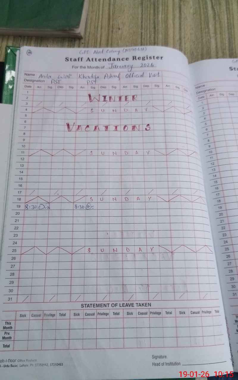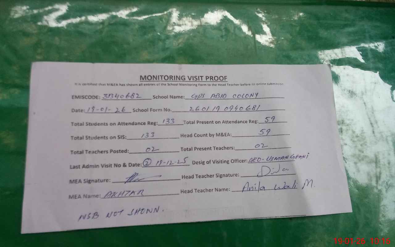 | EMIS Code: 31340682 | Name of School: GPS ABID COLONY | |||