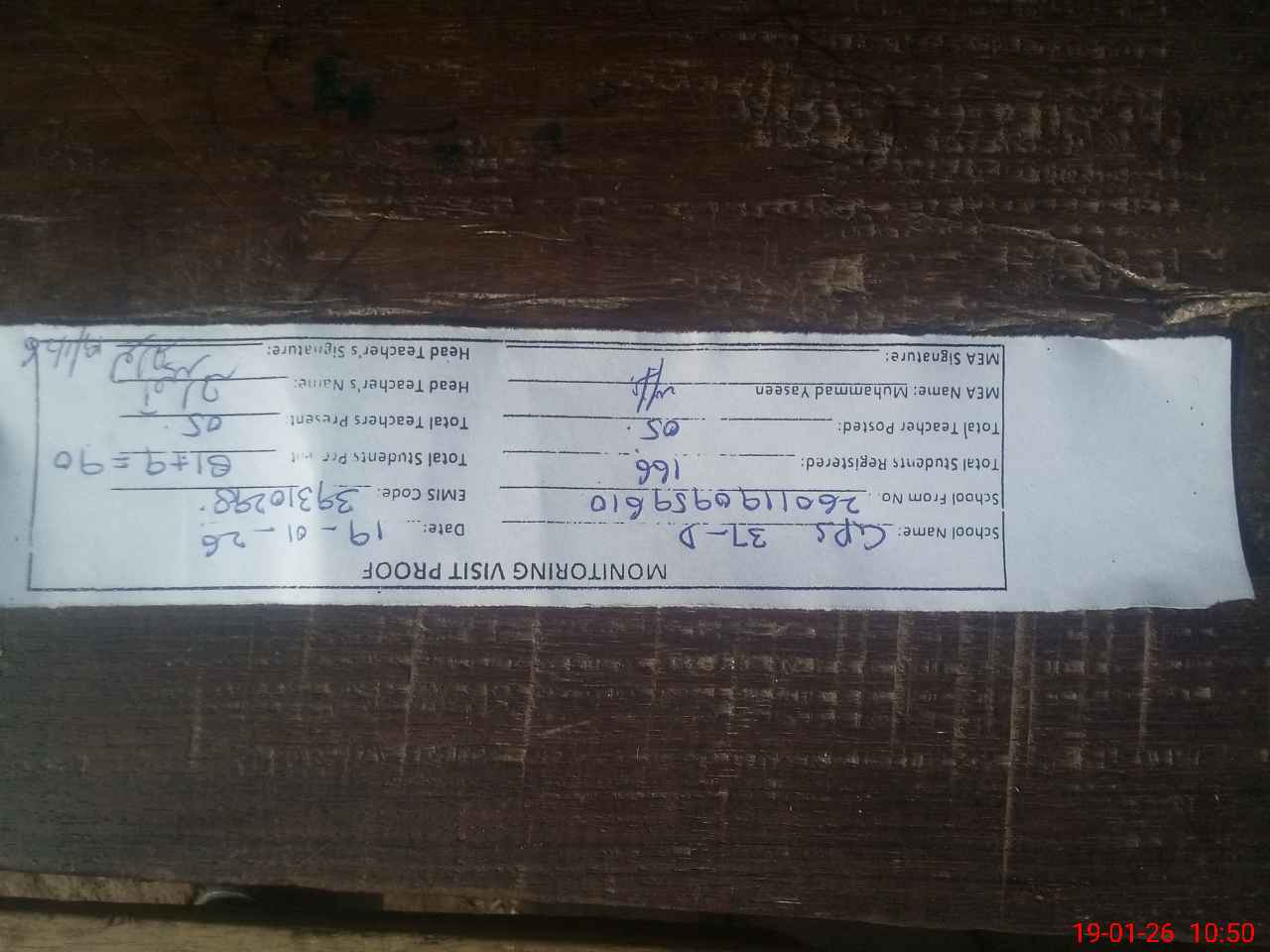 | Attendance Register | Head Teacher | MEA with School | Visit Proof |