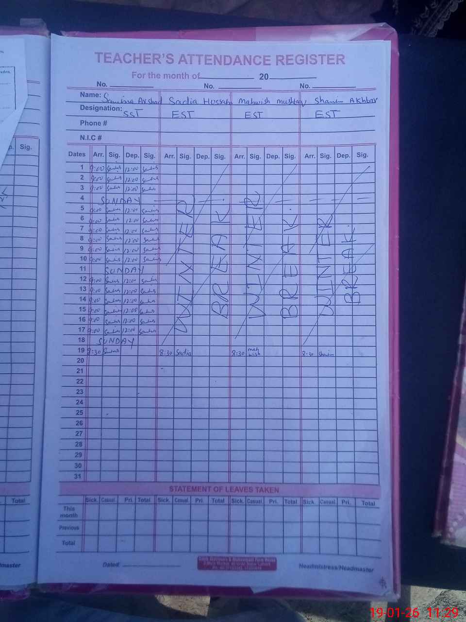 | Name: Sa**** Ar**** Designation: (School Headmaster's/Headmistress's) SST Phone/Cell Number: 03**** |