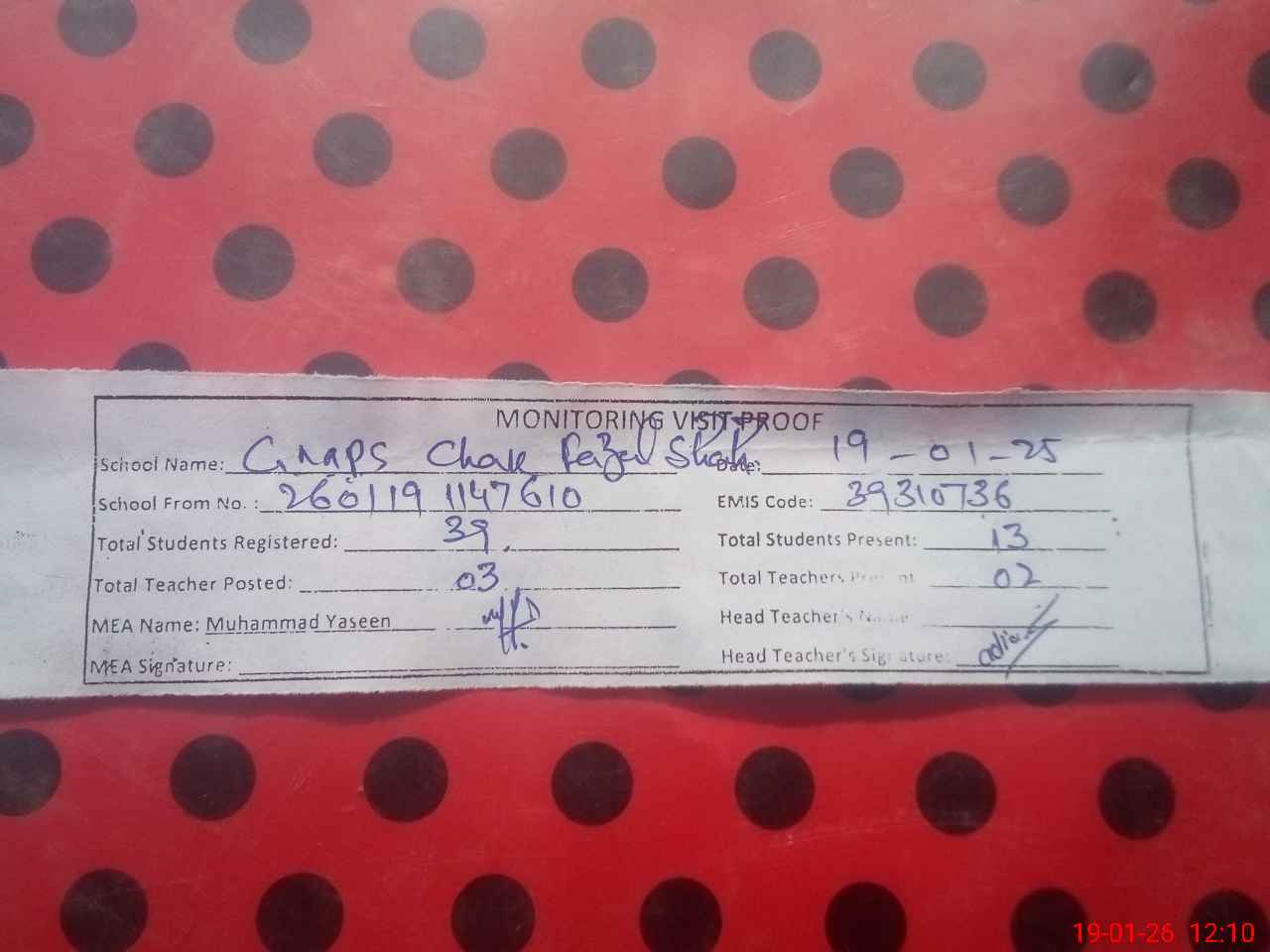 | EMIS Code: 39310736 | Name of School: GMPS CHAK FAZAL SHAH | |||