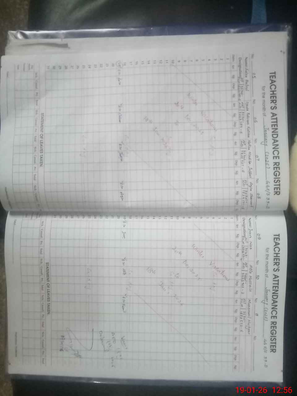 | CNIC | Full Name | Designation | R/C | Absence During Last Calender Month |