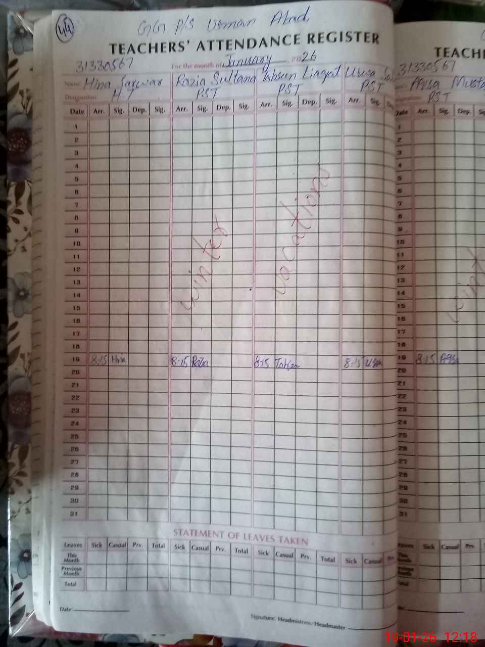 | Name: Hi**** Sa**** Designation: (School Headmaster's/Headmistress's) PST Phone/Cell Number: 03**** |