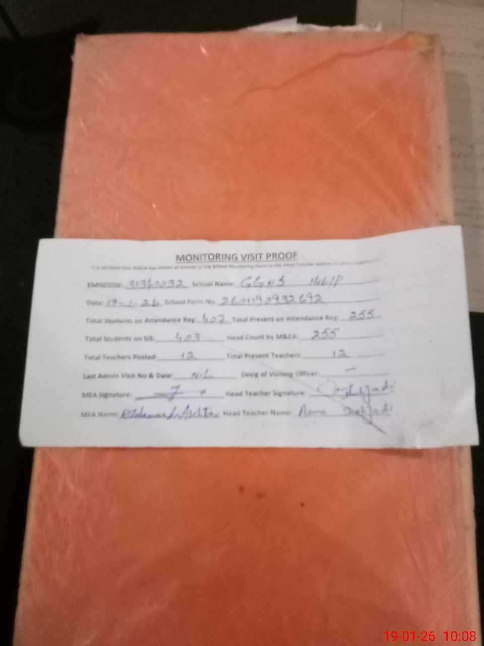 | Attendance Register | Head Teacher | MEA with School | Visit Proof |
