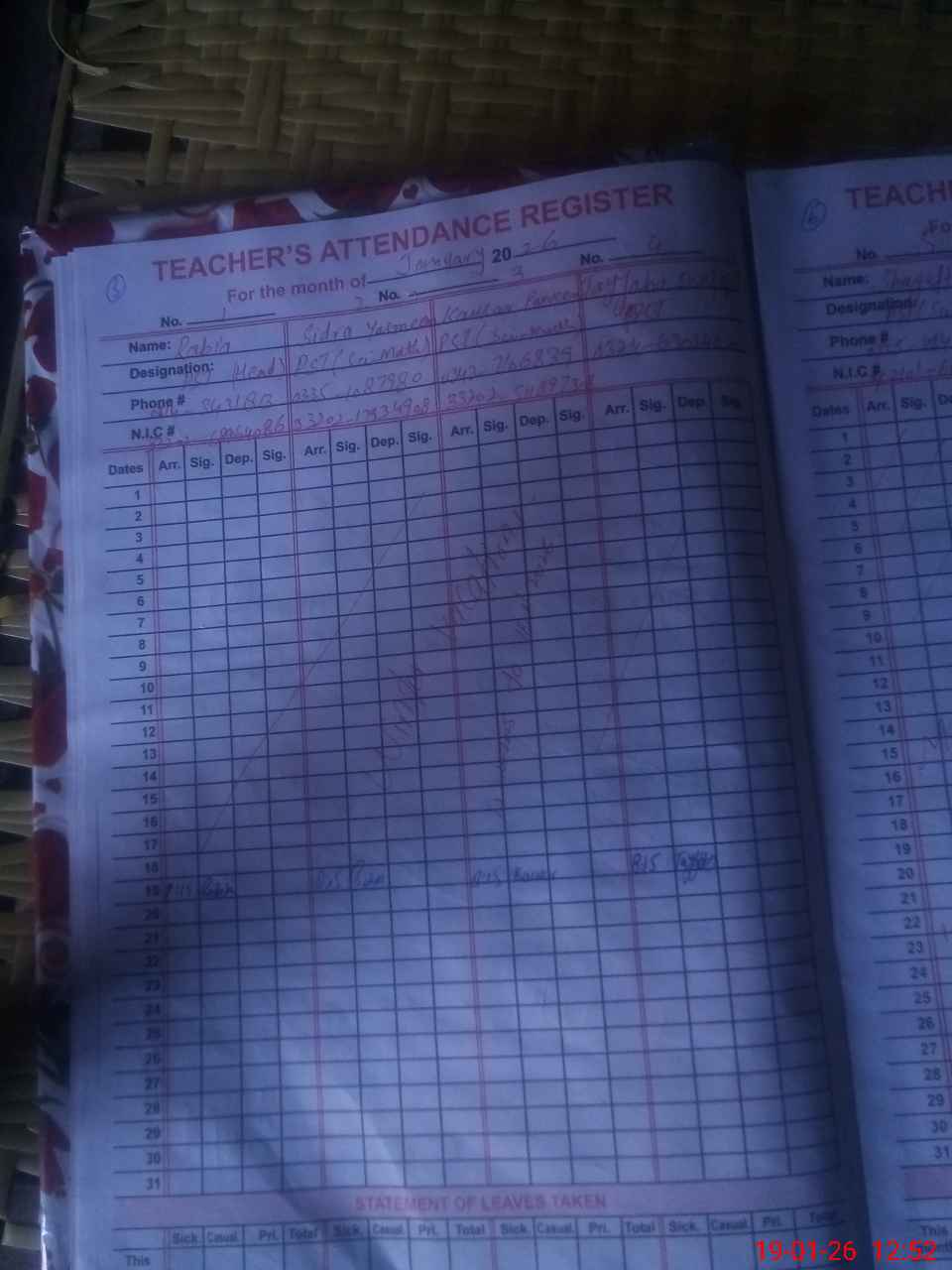 | 42**** | Sh**** Ze**** | PST Science/Maths | Regular | 0 | 0 | 0 | 0 | 0 | 0 | 0 | 0 | 0 | Absent (Un-Authorized) |