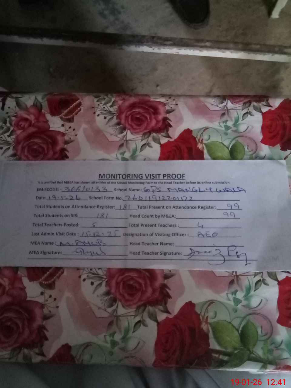 | EMIS Code: 36610133 | Name of School: GPS MANGLY WALA | |||