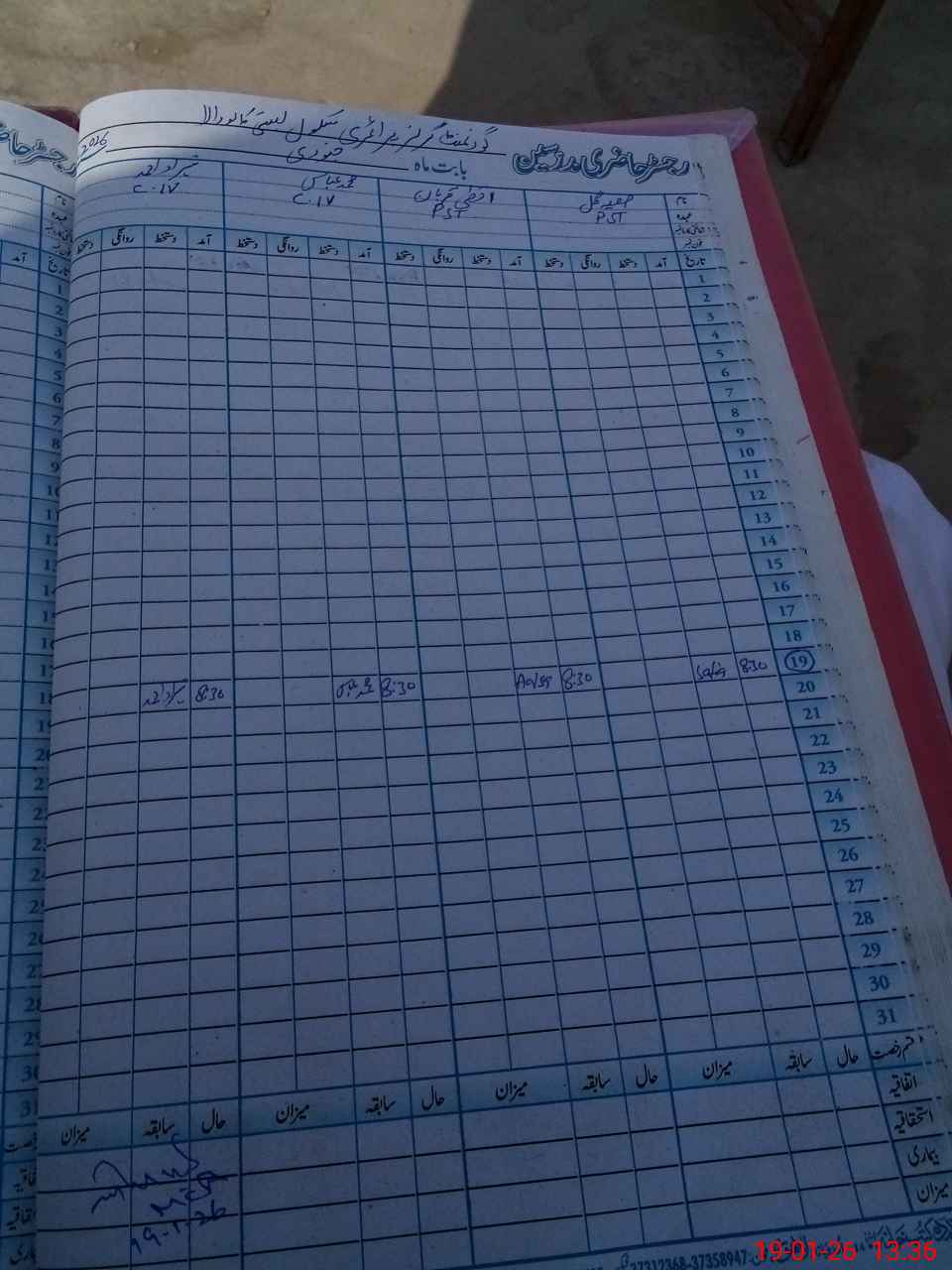 | CNIC | Full Name | Designation | R/C | Absence During Last Calender Month |